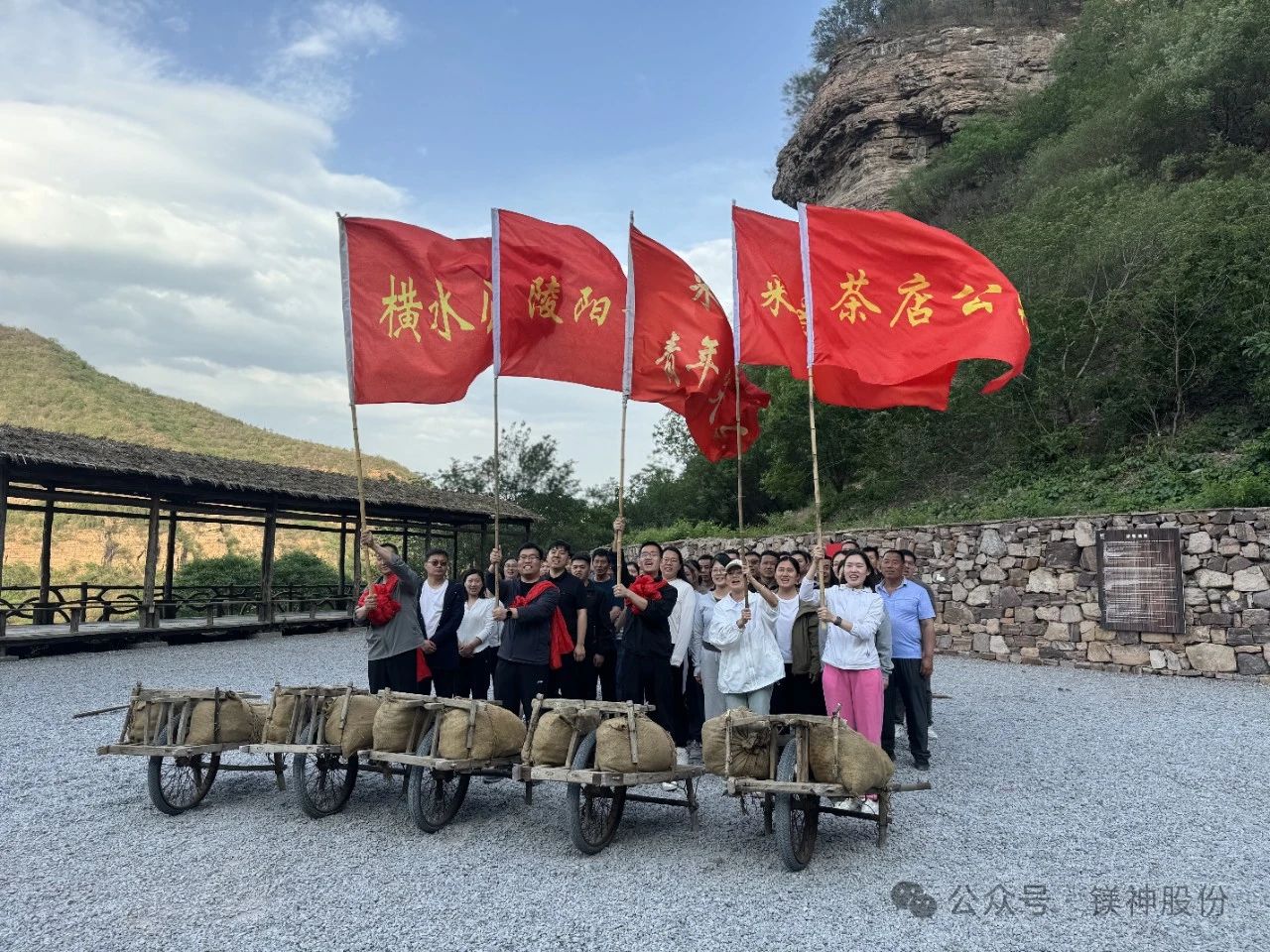 走出紅旗渠紀念館,大家開啟了徒步7.8公里前往紅旗渠青年洞的征程,沿著蜿蜒的渠道前行,腳下是堅實的石板路,身旁是潺潺的渠水,頭頂是湛藍的天空,遠處是巍峨的山巒。在徒步過程中,大家相互鼓勵、相互扶持,共同克服疲憊與困難。抵達青年洞時,全體人員在黨旗下莊嚴宣誓,鏗鏘有力的誓言回蕩在山谷間,彰顯著鎂神人對黨的忠誠與為事業奮斗的決心。隨后,大家還親身體驗了鑿山石、推獨輪車、打夯等當年修渠時的勞動項目。每一次揮錘、每一次推車、每一次夯打,都讓大家深刻感受到先輩們的艱辛與不易,也讓紅旗渠精神更加鮮活地銘刻在大家的心中。