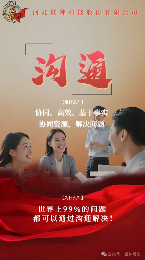 溝通,是實現(xiàn)鎂神組織協(xié)同、高效的工作方法;溝通是解決問題的良藥;世界上99%的問題都可以通過溝通解決!